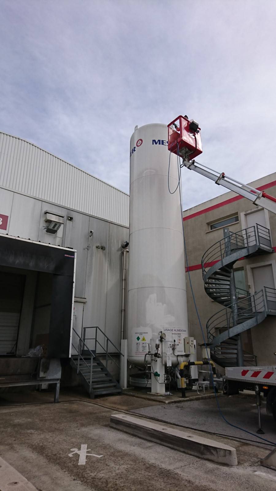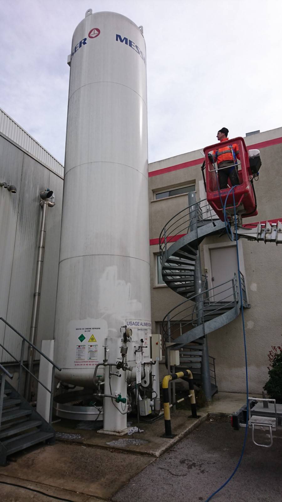 Nettoyage extérieur d'une cuve verticale sur le site XPO Logistics de Salon de Provence,