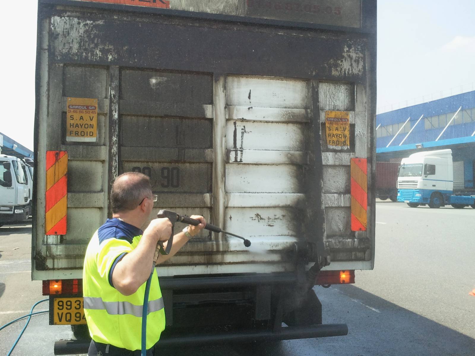 Les lavages ont été réalisés en urgence sur le MIN de Rungis pour une remise en état qui n'a pas été sans mal au vus de la saleté du véhicule, mais suite à laquelle le client a pu reprendre son activité de transport de denrées alimentaires. Le véhicule était à l'arrêt suite à un refus systématique des plateformes de chargements.
